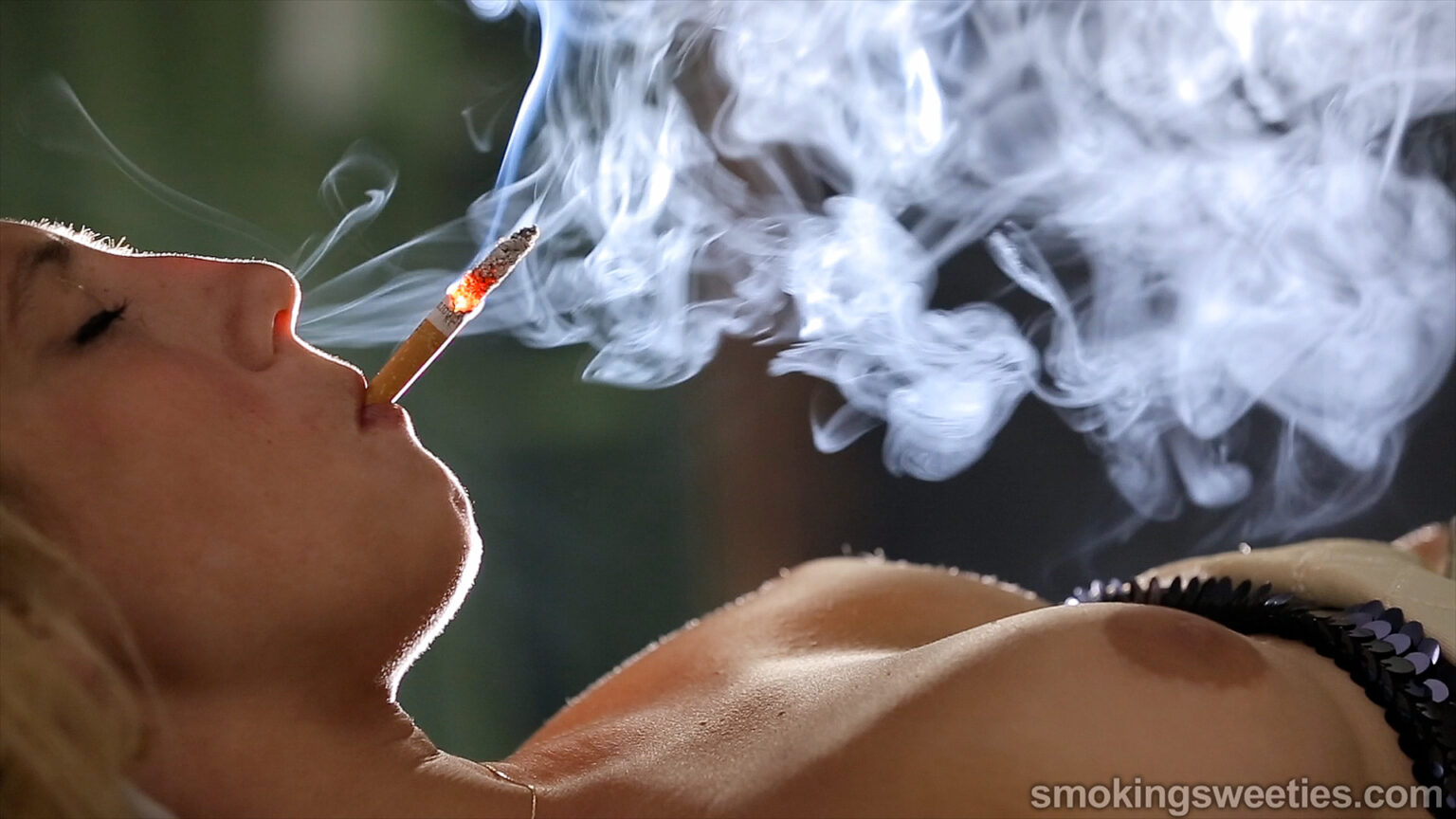 - Scene 3: Mery has now become a complete smoking art piece. In this scene she presents herself to the viewer while smoking two cigarettes (really nice shots of her body fully loaded of smoke, while keeping direct eye contact!), which adds to the crackling atmosphere.