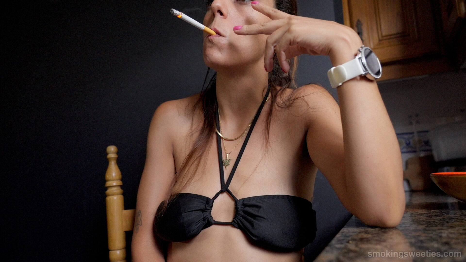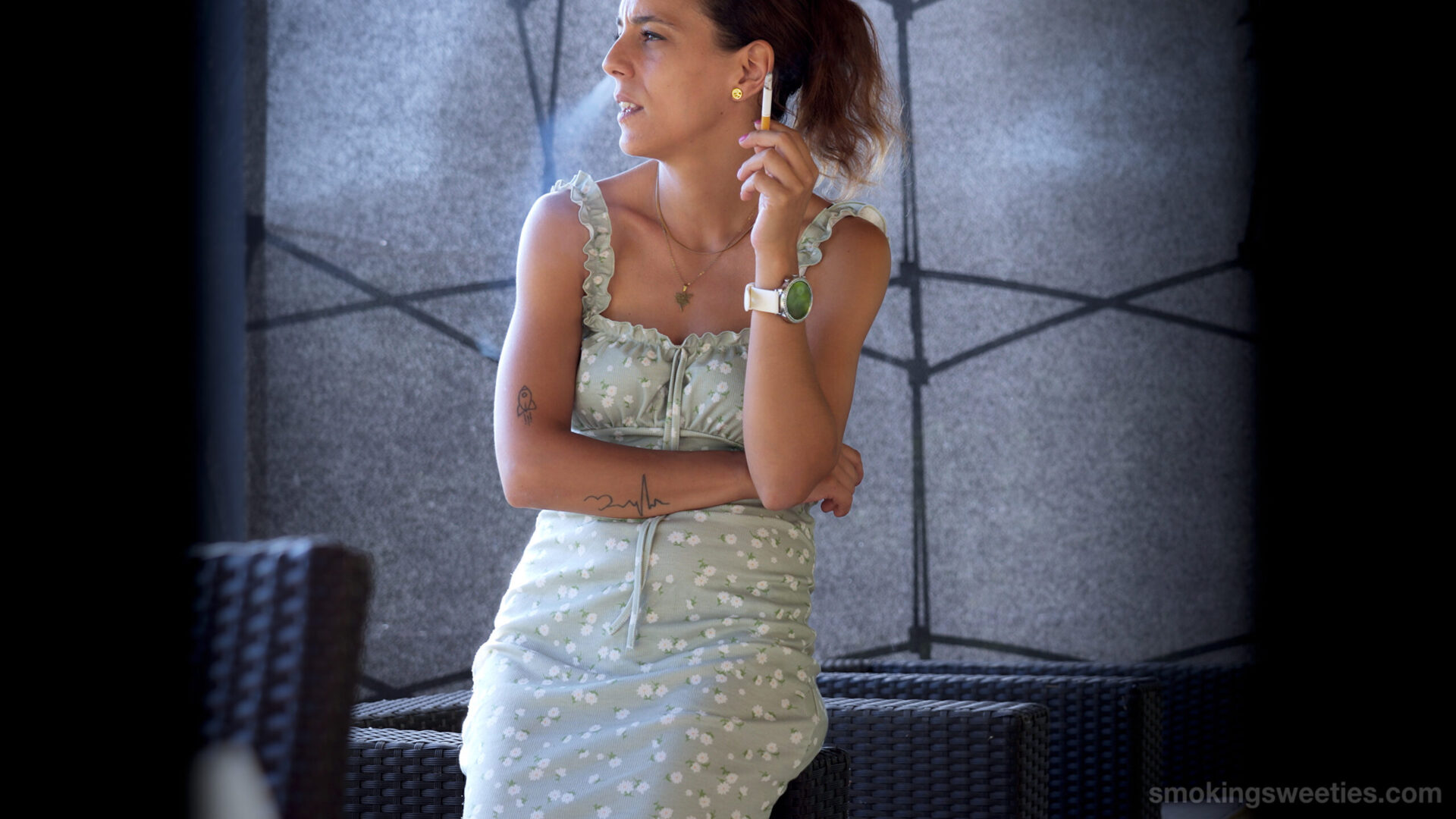 The video represents what it would be like to share a beautiful summer day with a true smoking woman. In just a few hours, Noemi has already smoked 9 cigarettes. Featured in the footage are deep cheek hollowing drags, dangles and talking exhales.