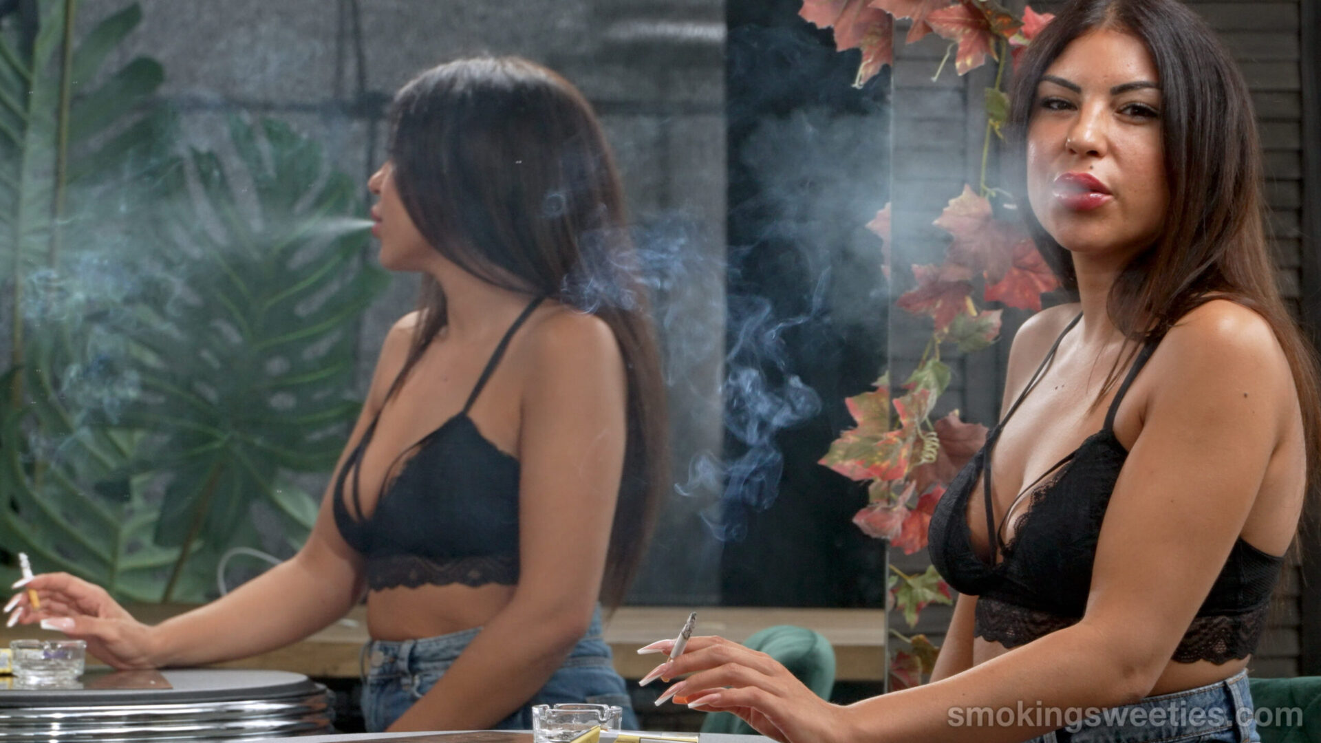 - Scene 2: Cheek hollowing drags are on display her, flashing 2 cigarettes with no breaks on a “looking at you” scene. Sofia sits beside a mirror, she naturally lives with a constant urge to smoke one cigaretteright after the other.